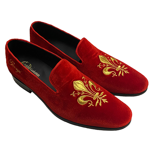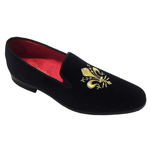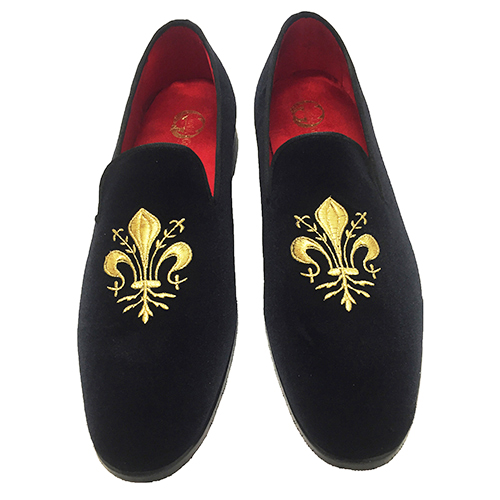 Slippers in vellutoย con ricamo giglio Fiorentino colore oroย personalizzabile, disponibile dal 35 al 47 calzata comoda Italiana. Scarpe realizzate su ordinazione in laboratorio artigianale con pellami e materiali di prima scelta, tutto made in Italy. Dal momento dellโordine specificando la taglia e colore, si ha bisogno di un massimo di 10 giorni lavorativi per la realizzazione (su richiesta si puรฒ avere la cintura nello stesso pellame con lโaggiunta di 35,00 euro) .Materiali: tomaia in velluto, fodera in pelle, plantare in pelle con poron per un miglior confort suola in cuoio costruito e cucita blake. Scarpe disponibili in tutti i colori della cartella, si puo scegliere il colore della scarpa, la fodera in pelle o raso, il colore del ricamo e il colore del battistrada della suola (disponibili colori della cartella)