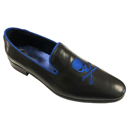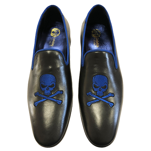 Slippers in vitelloย , con ricamo teschioย colore oroย personalizzabile, disponibile dal 35 al 47 calzata comoda Italiana. Scarpe realizzate su ordinazione in laboratorio artigianale con pellami e materiali di prima scelta, tutto made in Italy. Effettuato l’ordine, specificando la taglia e il colore,ย per la realizzazione si ha bisogno di un massimo di 10 giorni lavorativi, (su richiesta si puรฒ avere la cintura nello stesso pellame con lโaggiunta di 35,00 euro). Materiali: tomaia in velluto, fodera in pelle, plantare in pelle con poron per un miglior confort e suola in cuoio costruita e cucita blake. Disponibili in tutti i colori della cartella. Si puรฒ scegliere il colore della scarpa, la fodera in pelle o raso, il colore del ricamo e il colore del battistrada della suola, (disponibili colori della cartella)