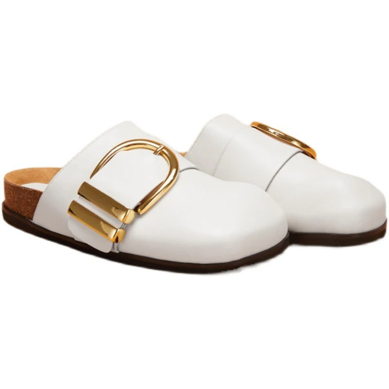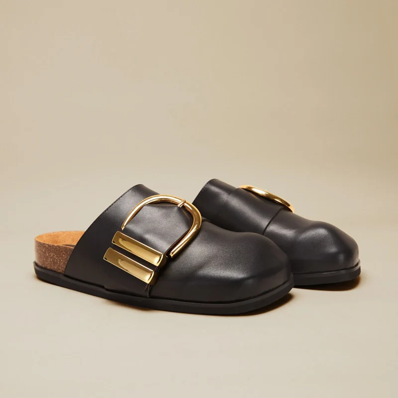 Slippers vera pelle sabot ciabatta donna con fibia
