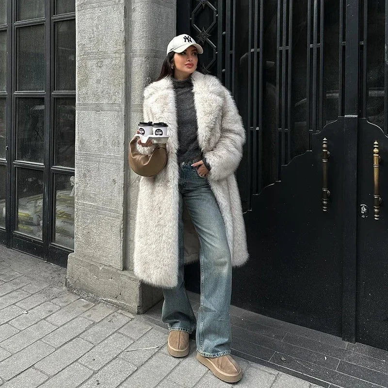 Slouchy Chic Gradient Long Eco Faux Fur Coat