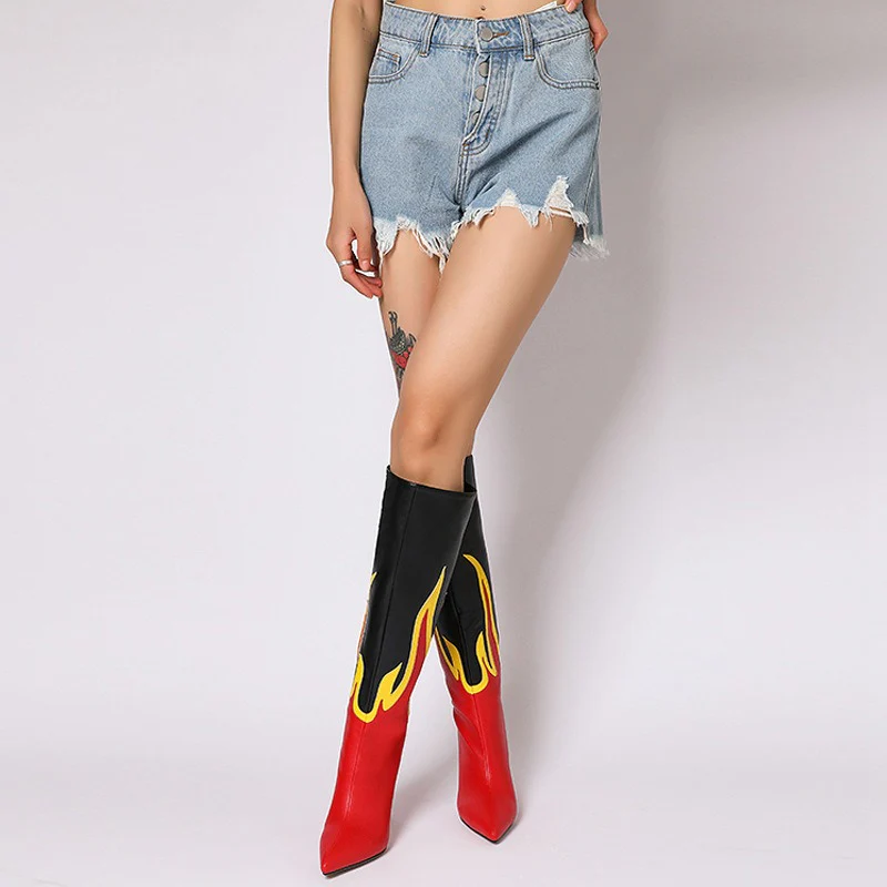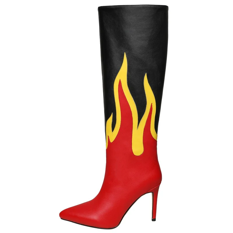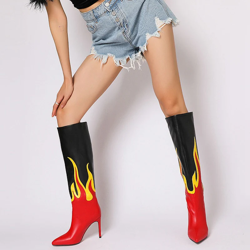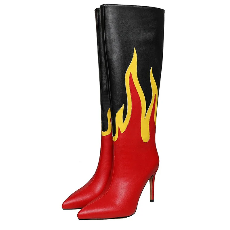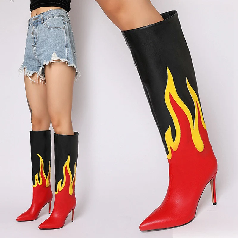 Stivale alto fiamme con tacco spillo donna
