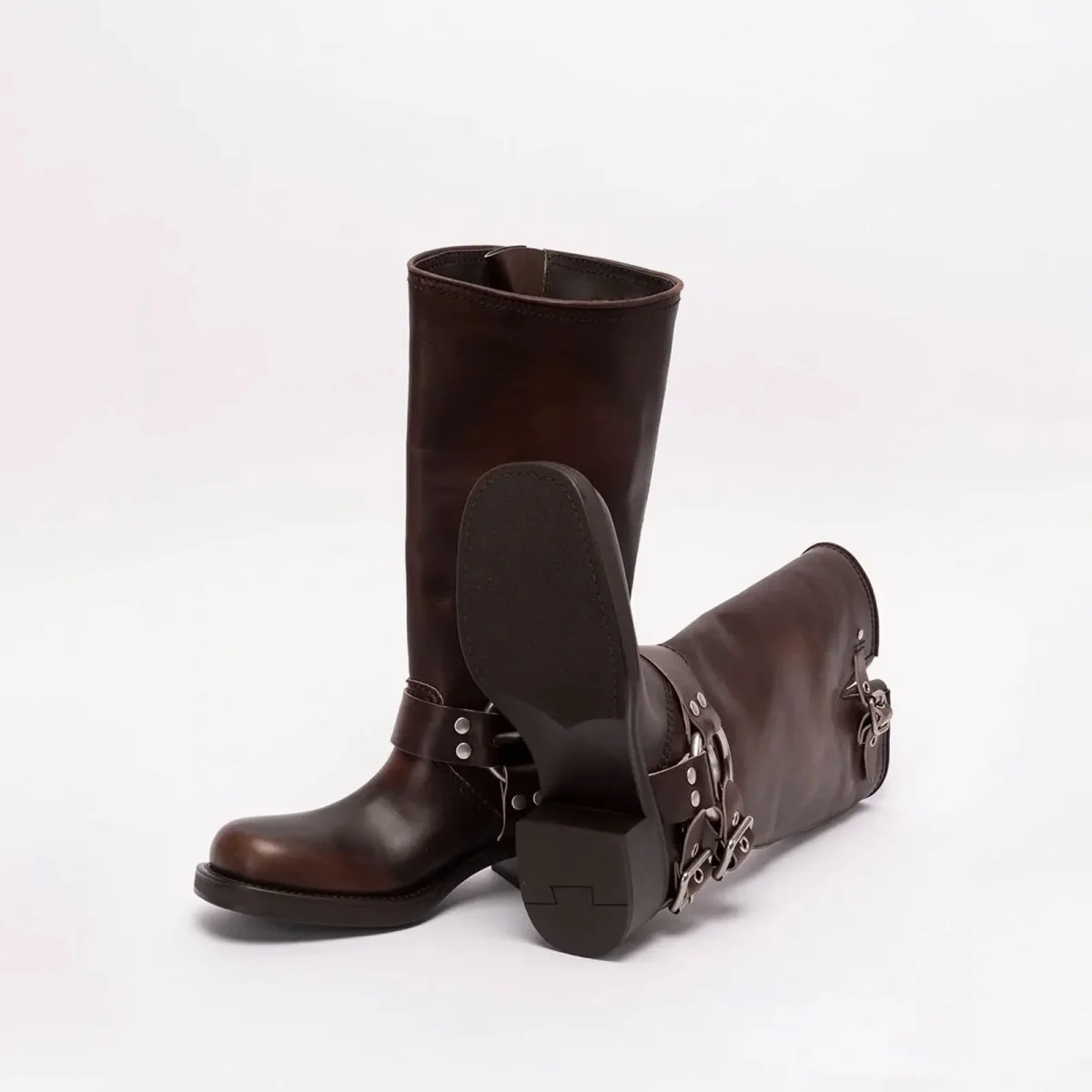 Stivale alto vera pelle donna con anello