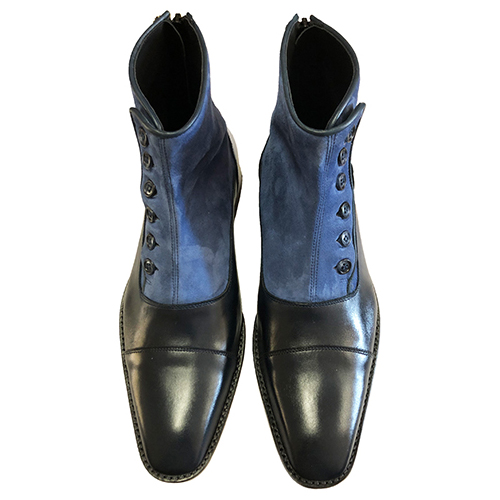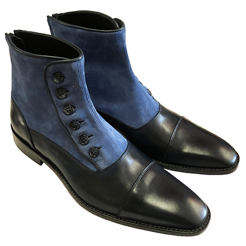 Stivaletti uomo modello vintage con bottoni , in vitello e camoscio, foderate in pelle, realizzati su ordinazione in qualsiasi colore della cartella con opzione personalizzabile. Materiali: tomaia in pelle, fodera in pelle, plantare in pelle con poron per un miglior confort suola in cuoio o gomma Vibram costruita e cucita blake .