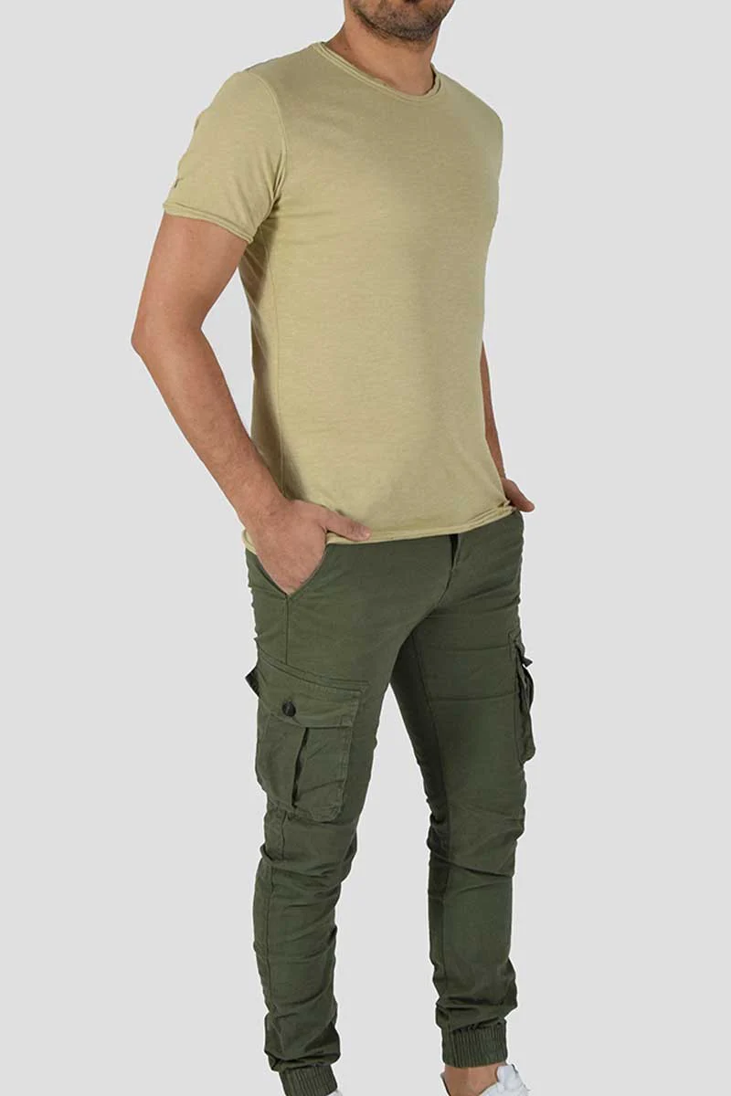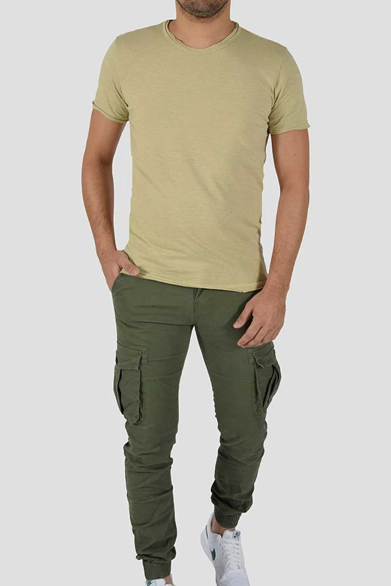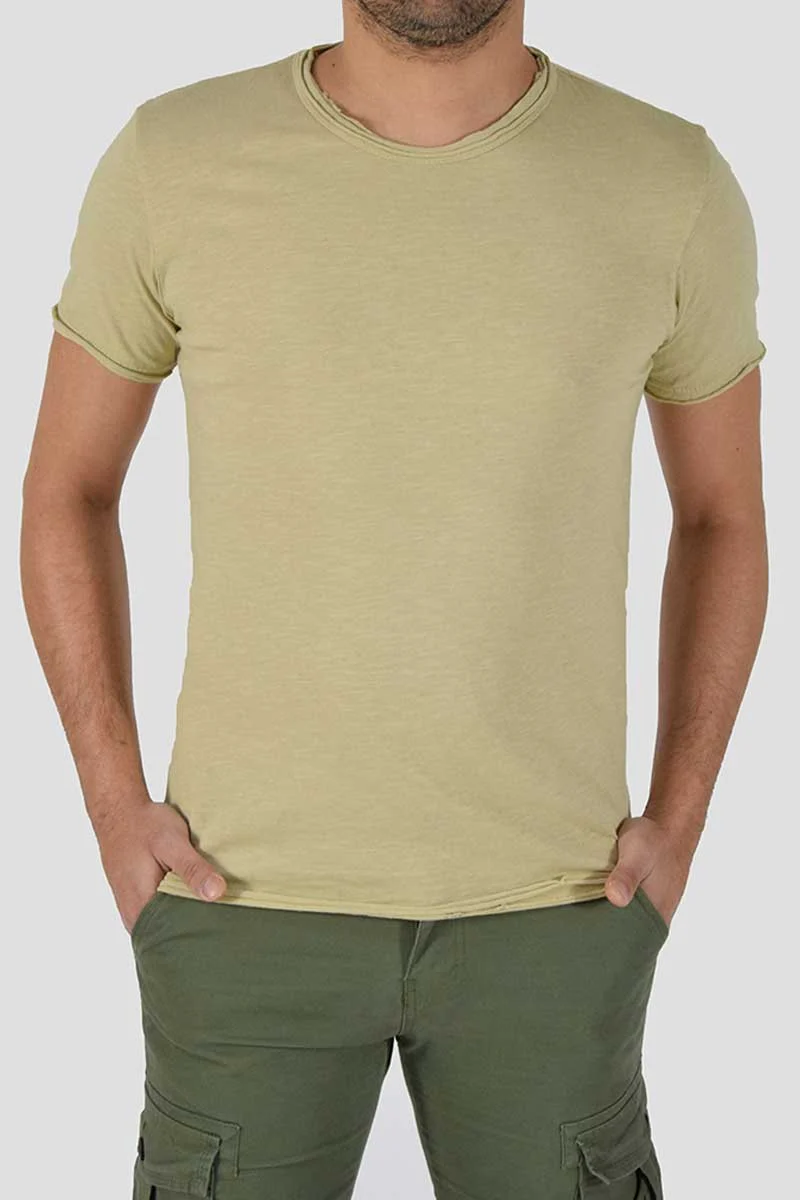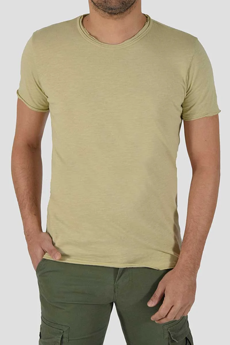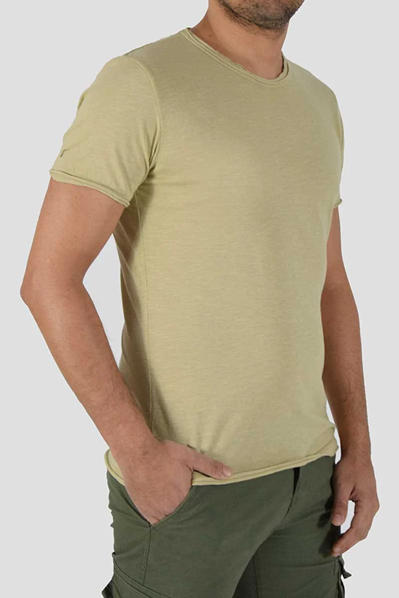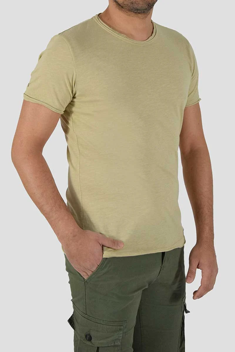 T-SHIRT CON TAGLIO VIVO COLORE: Beige COMPOSIZIONE: 100% Cotone ALTEZZA MODELLO: 185 cm TAGLIA XL MADE IN ITALY
