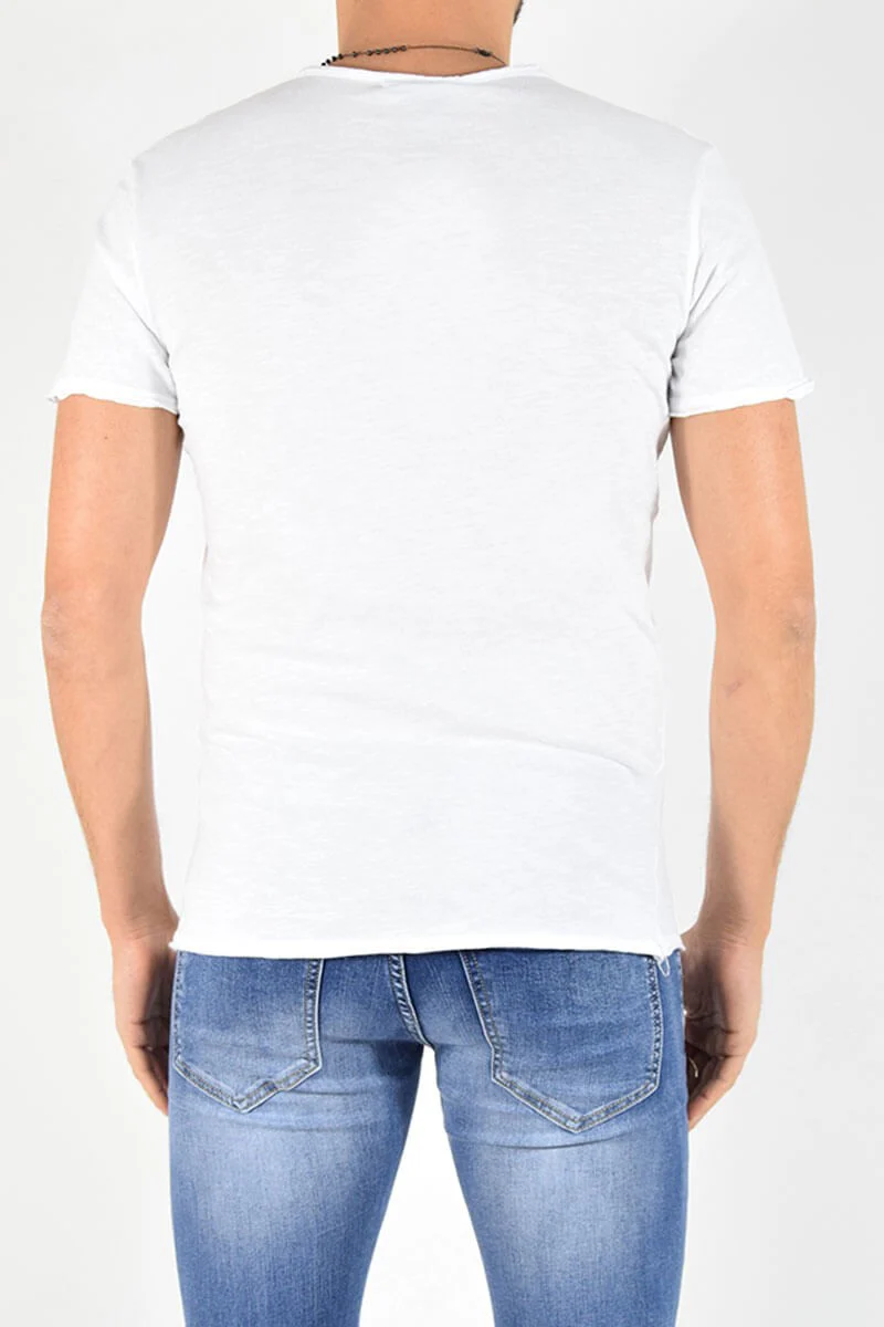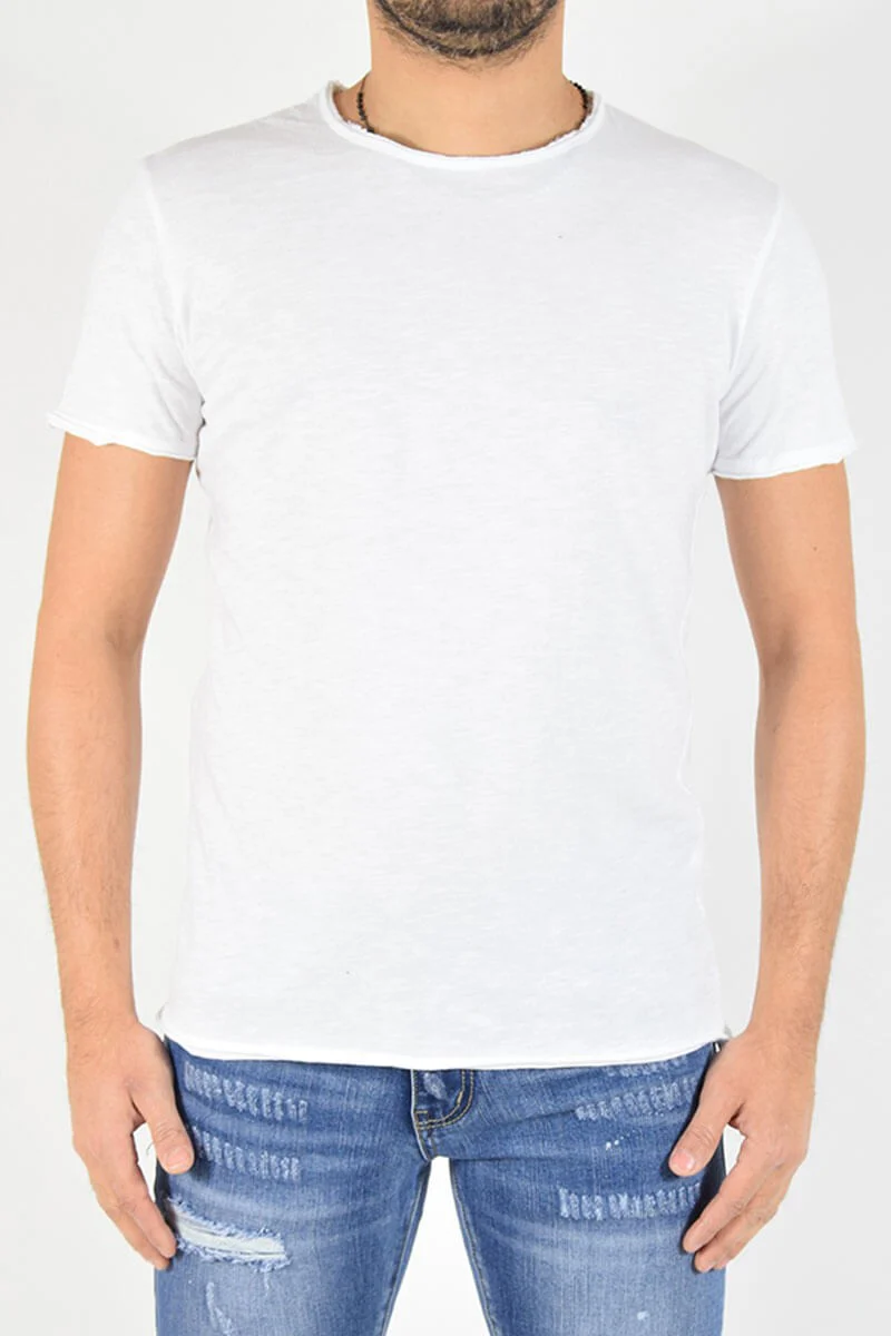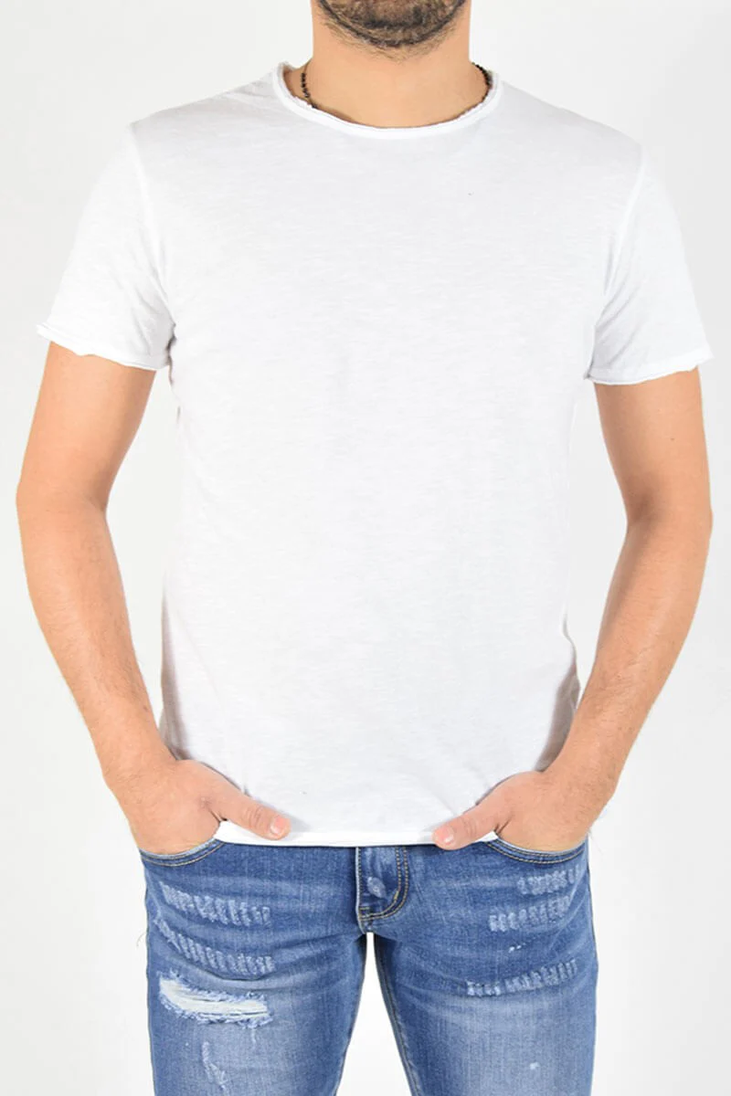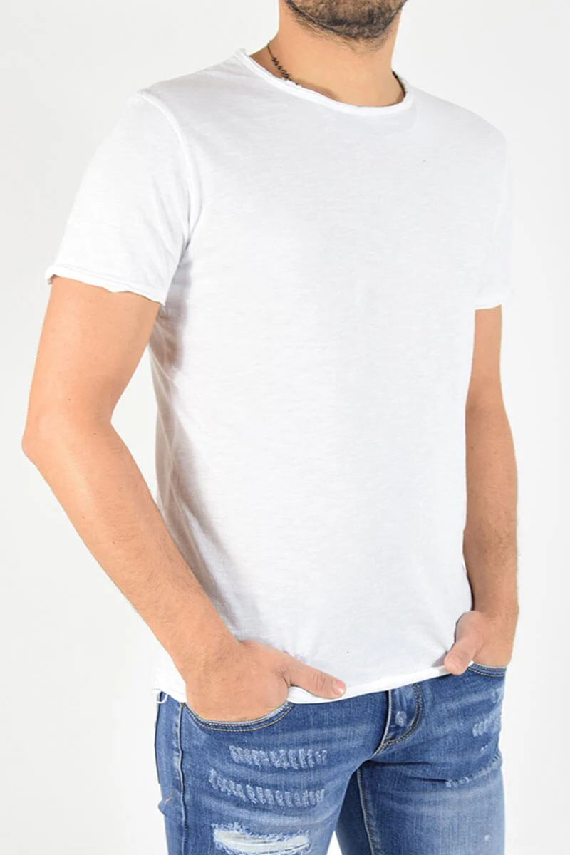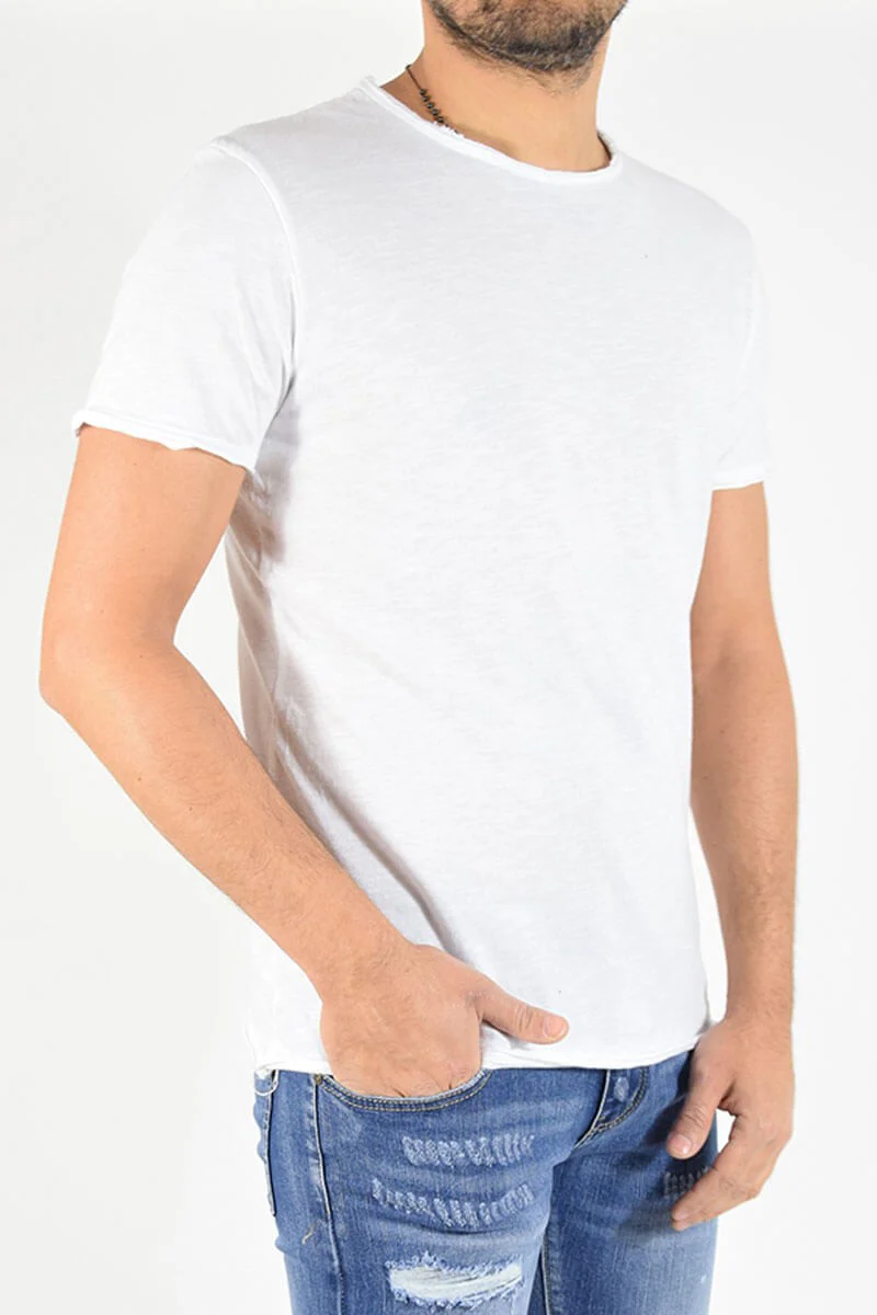 T-SHIRT CON TAGLIO VIVO COLORE: Bianco COMPOSIZIONE: 100% Cotone ALTEZZA MODELLO: 185 cm TAGLIA XL MADE IN ITALY