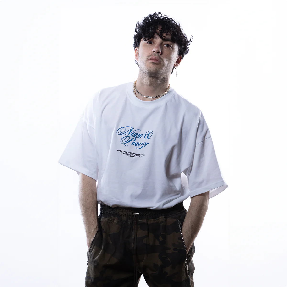 Materiale: 100% Cotone Stampa fronte / retro Vestibilitร oversize (Selezionare una taglia in meno) Pow3r รจ alto 1.80m e indossa una taglia L