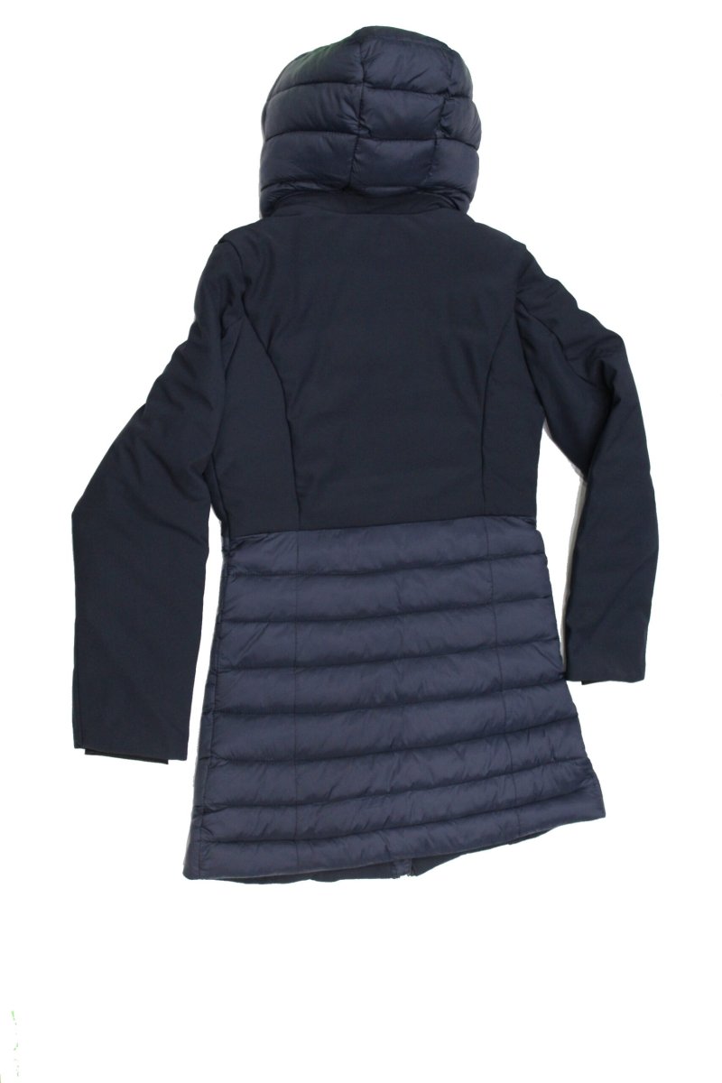 Giaccone DONNA LUNGO con cappuccio staccabile, col blu , doppio tessuto esterno soft shell/ Nylon , imbottitura sintetica