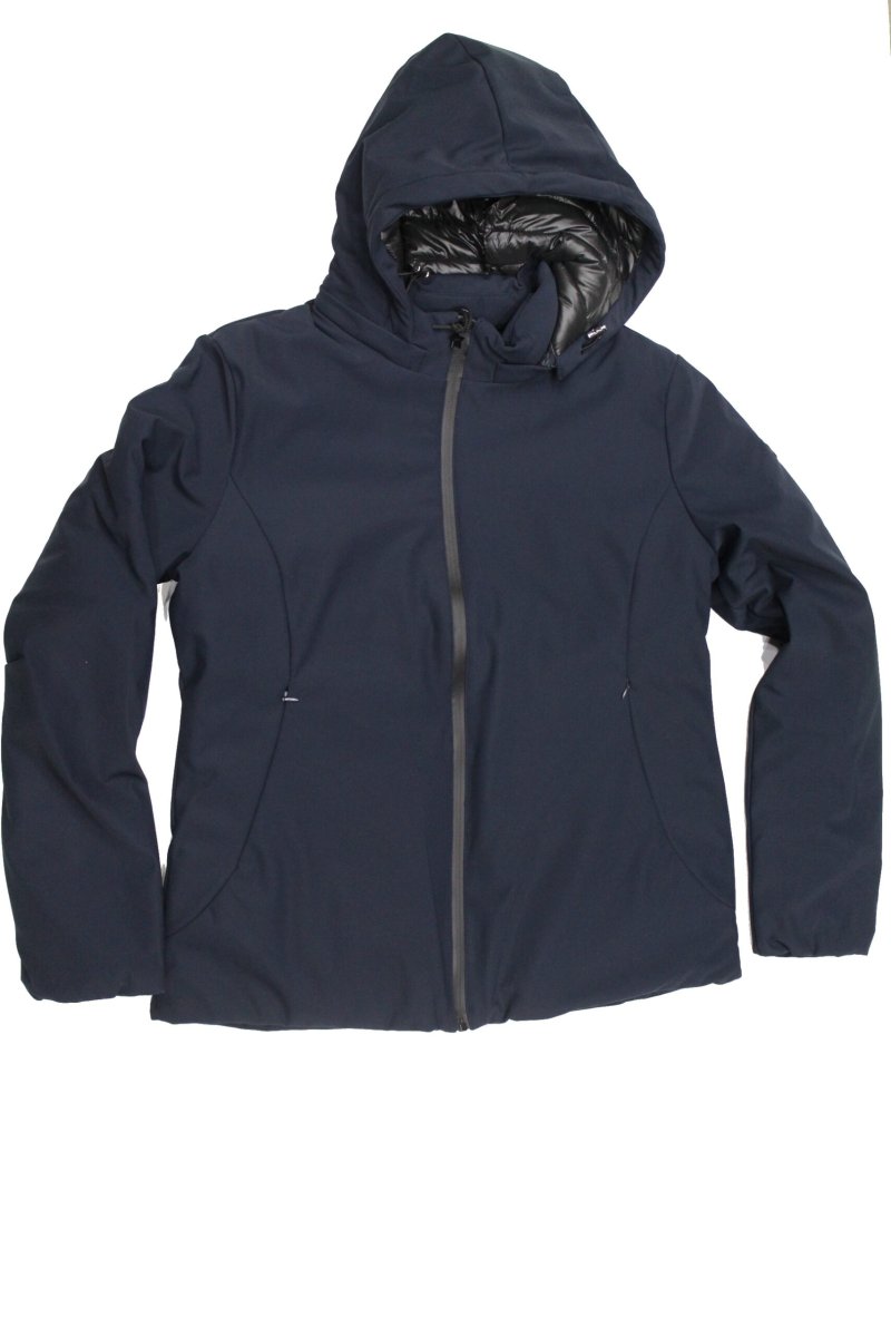 Giubbotto corto Donna con cappuccio staccabile, col blu , tessuto tecnico in soft shell, imbottitura sintetica