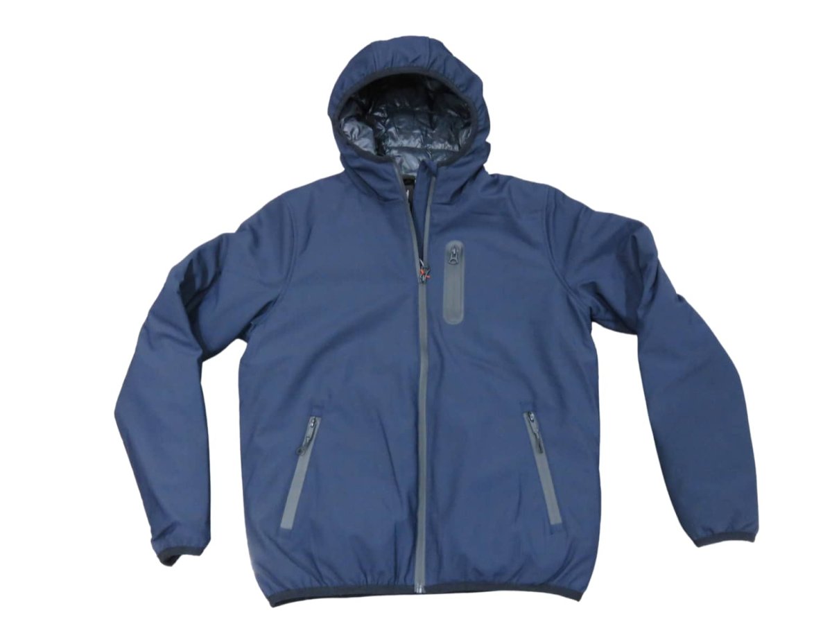 Giubbotto uomo con cappuccio, tessuto esterno tecnico,ย imbottitura sintetica,ย col blu