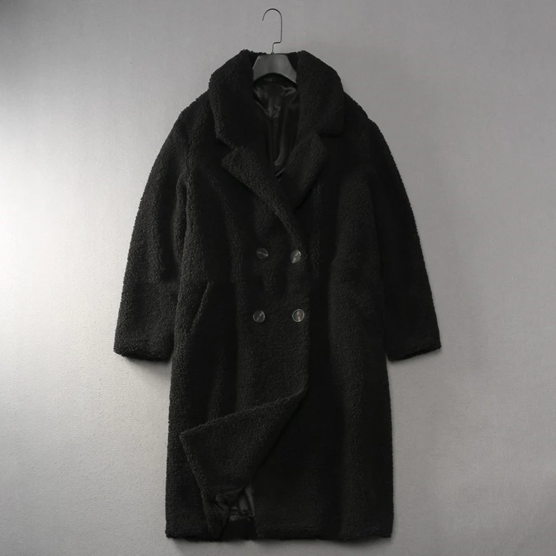 Women’s Loose Lapel Over Knee Long Soft Waxy Teddy Coat Jacket