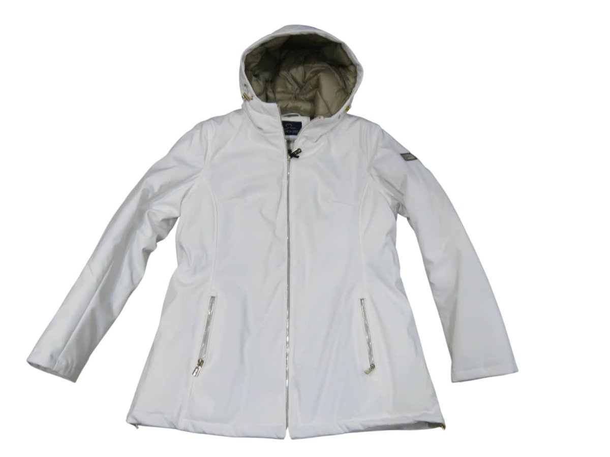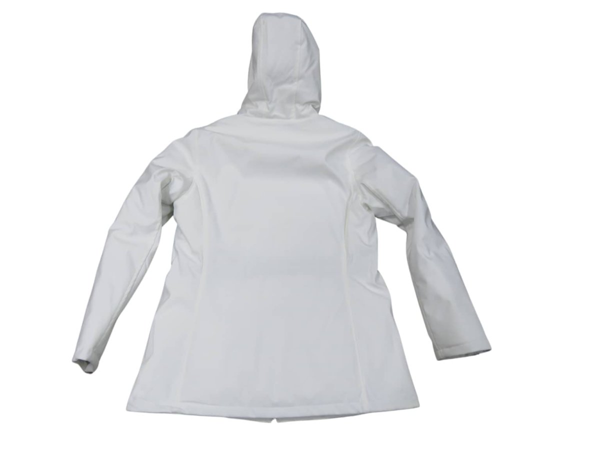 Giubbino donna lungo con cappuccio tessuto esterno soft shell imbottitura sintetica, col bianco